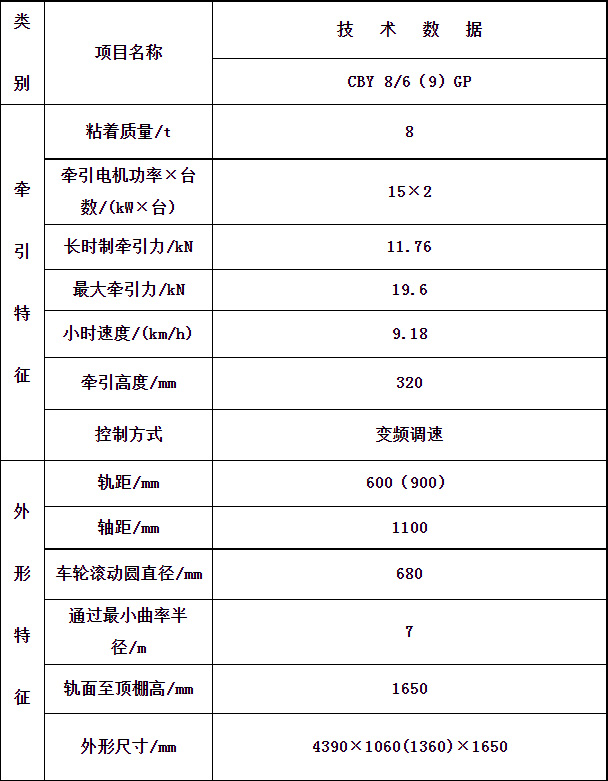 CBY系列電機(jī)車主要技術(shù)參數(shù)
